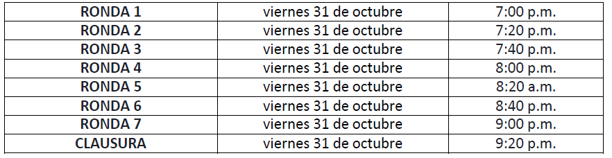 Jugador que no pueda participar en alguna ronda le notificará al árbitro jefe previamente para que no le empareje esa ronda.
