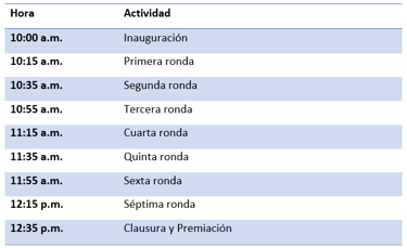 Se jugará un sistema suizo a 7 rondas MÍNIMO, con un ritmo de juego de 5 minutos con 3 segundos de incremento por jugada desde el primer movimiento.